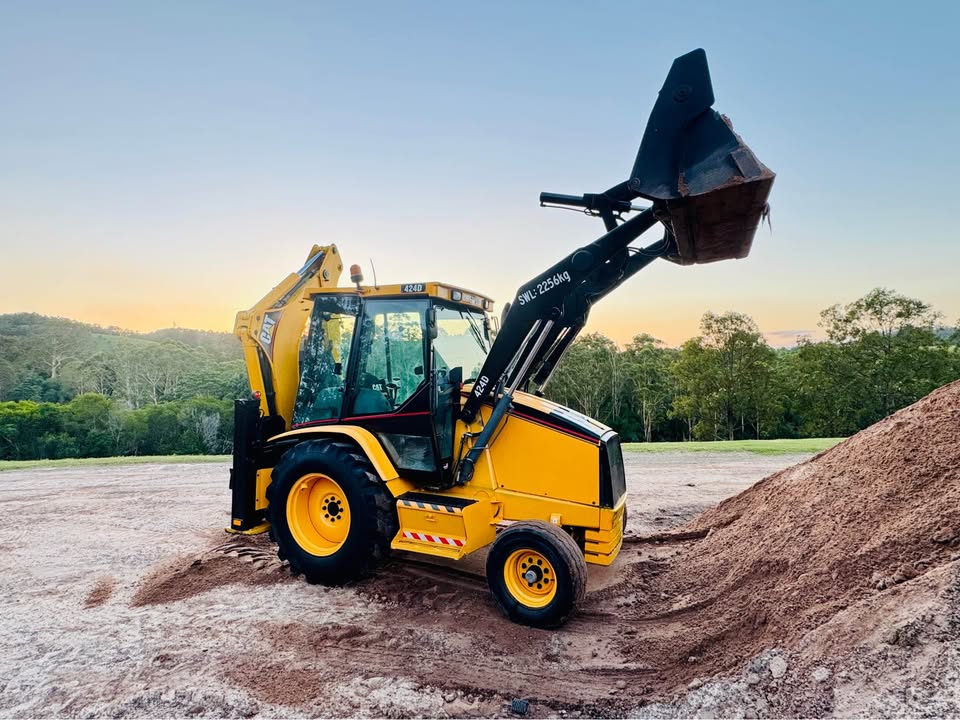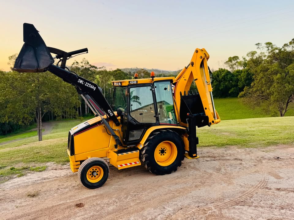 2008 Caterpillar 424D Backhoe Loader – 7,045 hours, well-maintained and recently serviced. Features a 4-in-1 front loader bucket with new 2.4m cutting edge, 900mm rear mud bucket with teeth, and genuine CAT 300mm trenching bucket. Enclosed cab with air conditioning, approx. 80% tyres, comes with two keys and owner’s manual. Engine and hydraulics are tight, starts easily, and ready for work. Honest, reliable machine in regular use – inspection and test drive welcome.