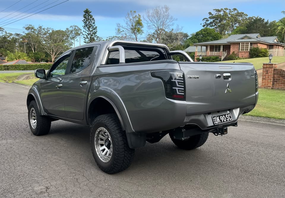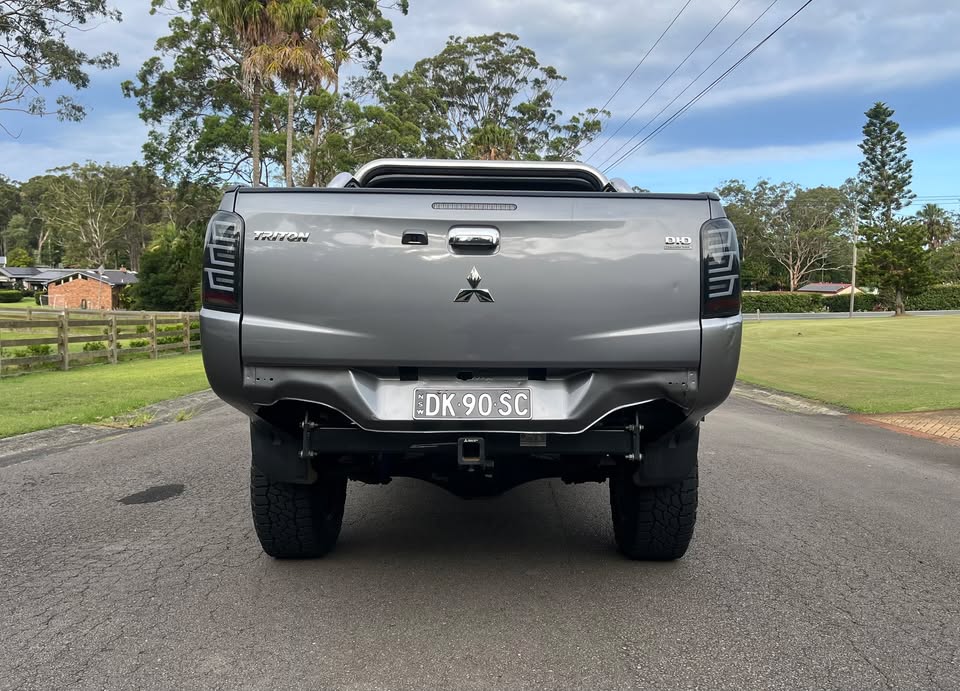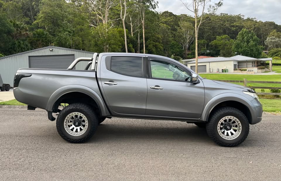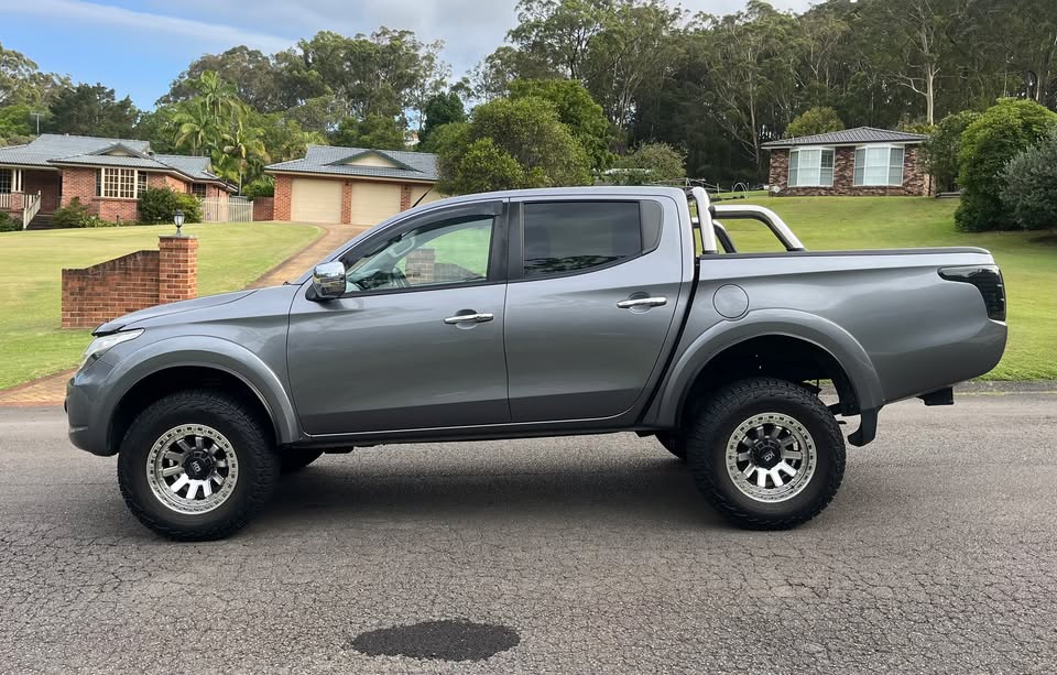 2016 Mitsubishi Triton Exceed – 178,000km, 2.4L MIVEC Turbo Diesel, 5-Speed Automatic, Grey, 4WD with high/low range. Features heavy-duty suspension, Super Select II 4WD with locking centre diff, factory rear locking diff, leather interior, Apple CarPlay, heated front seats, dual-zone climate control, Exceed DRL, 16–18” alloy wheels, sports bar, fog lights, side steps, tow bar (new wiring harness, never used), bed liner, roof rails (optional), 265/70/17 Falken Wildpeak AT3W tyres (90% tread), TruFit 3D mats front & rear, tinted windows, tinted weather shields & bonnet protector, SAAS throttle controller. Safety & convenience include reverse camera, rear parking sensors, multiple airbags, ABS with EBD, hill start assist, traction control, cruise control, keyless entry & push-button start. Tow capacity ~3,100kg braked. Well-equipped for off-road and everyday use.