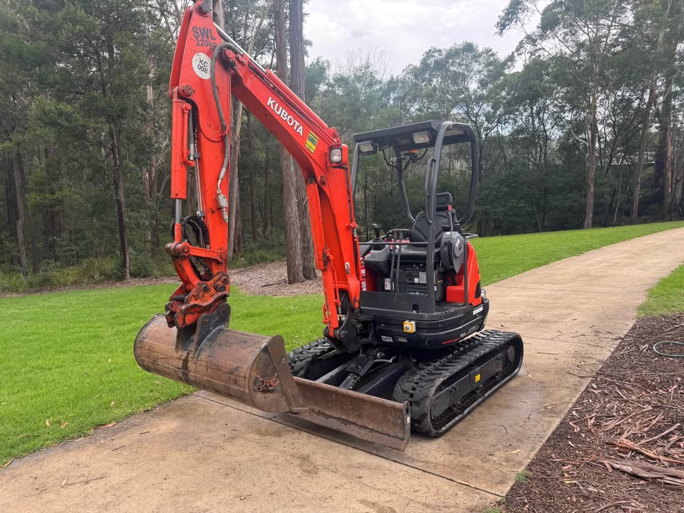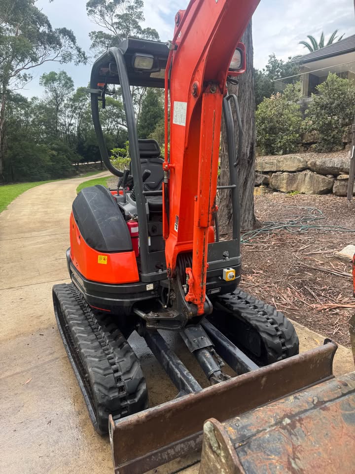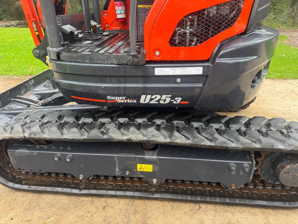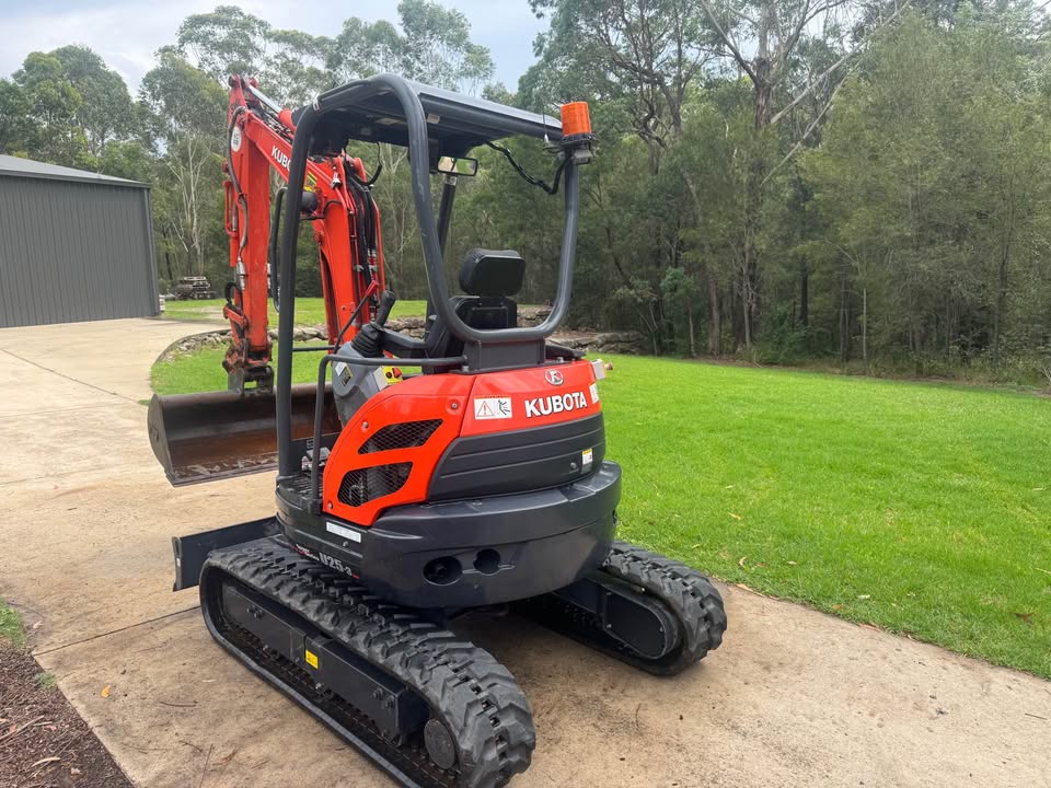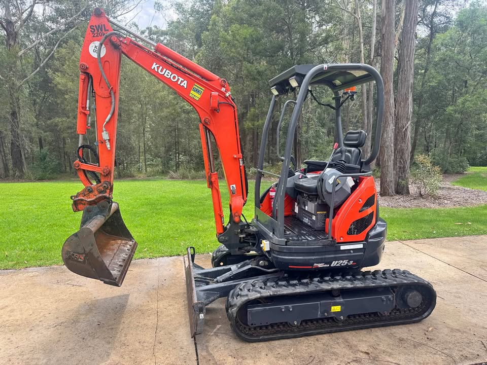 Kubota U25-3 excavator with very low 454 hours. Comes with site safety gear (camera, lights, e stops, radio etc) and full set of buckets (1,200mm 600mm 450mm and 300mm) plus rock pick. Has quick hitch feature for fast bucket changes. In great working order. Has spent most of its life garaged in shed on 5acre lot doing odd jobs. Serviced regularly.