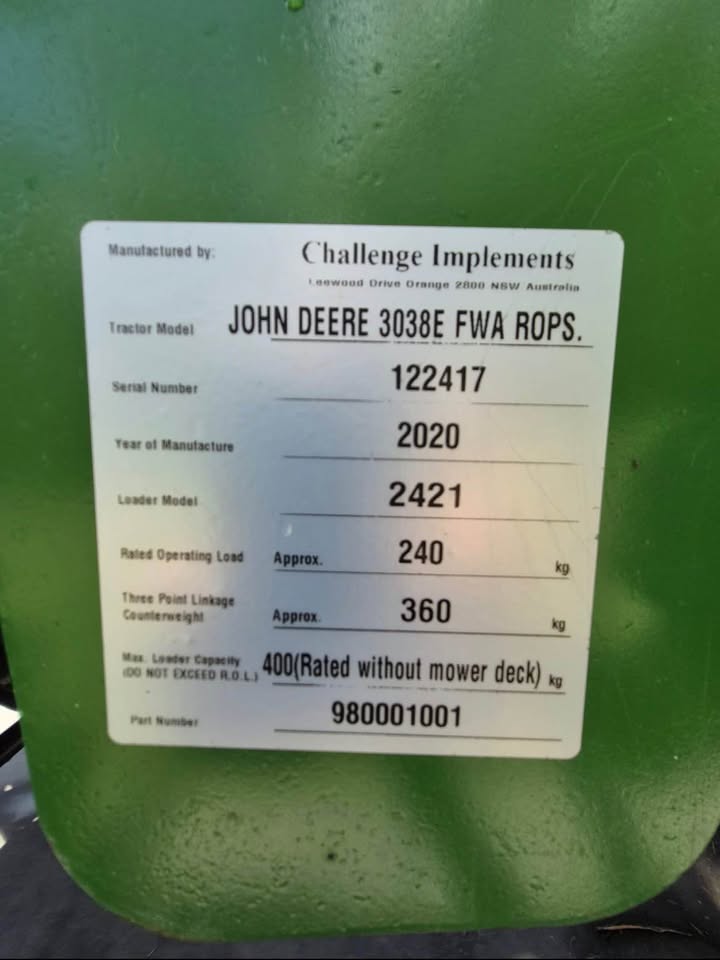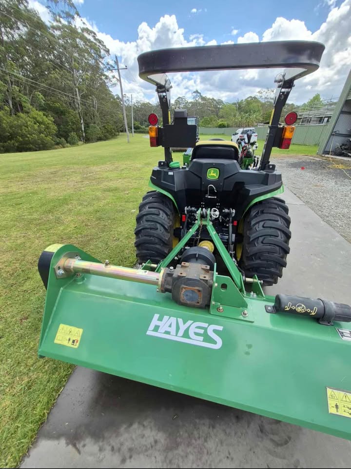 2020 John Deere 3038E 37hp 4WD hydrostatic tractor with only 400 hours. 4-in-1 bucket plus Hayes 1500mm heavy-duty flail mower. Easy to use, clean and ideal for acreage, fire trails and maintenance.